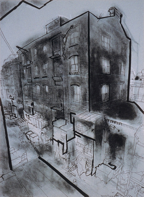 lucinda rogers ink drawing crayon charcoal london life shoreditch london east end cityscape street scene