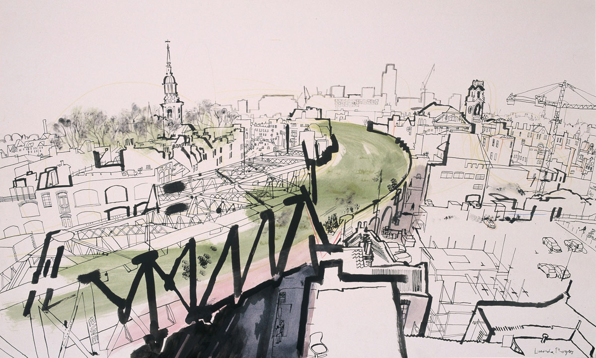 lucinda rogers drawing ink watercolour london overground st leonards shoreditch east london line cityscape rooftops