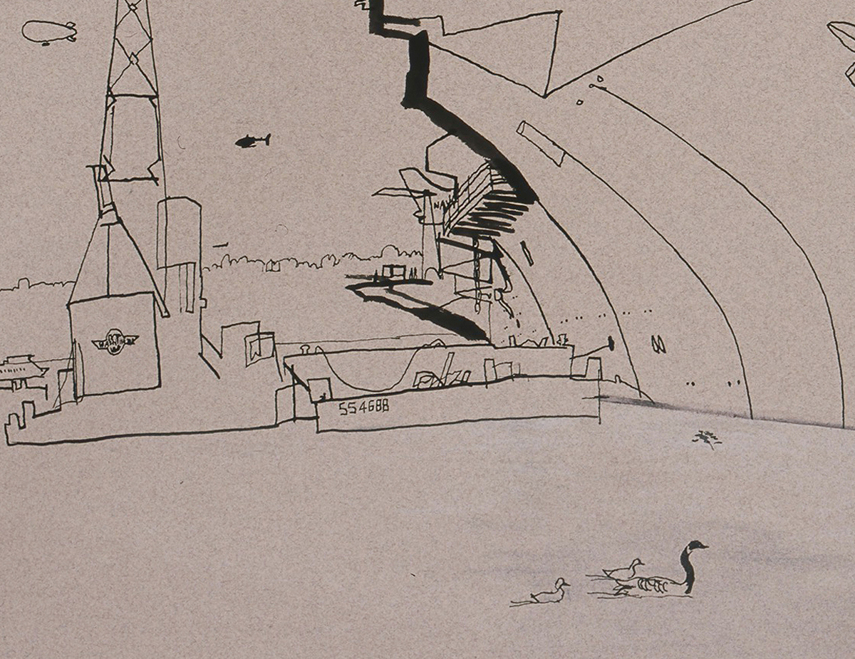 lucinda rogers ink drawing new york city USS Intrepid pier 66 aircraft carrier geese