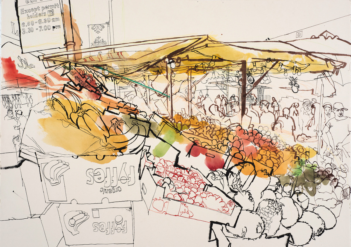 Fruit Mountain at the entrance to Ridley Road